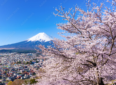 山梨県富士吉田市 春の新倉山浅間公園