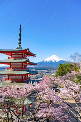 山梨県富士吉田市 春の新倉山浅間公園