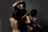 Threesome concept. Three sexy models together. One man and two sexy women. Polygamy or bigamy. Swinger or trio. Bisexual lady. Prostitution or fantasy. Polyamory and polygamy. Romantic of Threesome.