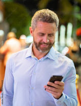 Businessman talking on phone on night city. Businessman using mobile. Mature businessman chatting online. Businessman making a call. Business talk. Business man speaking on phone outdoors.