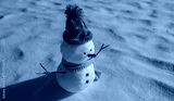 Snowman on winter background. Playful snowman outdoors. Winter holiday. Cute snowman in snow. Christmas and New Year. Snowman festive winter celebration. Winter theme.
