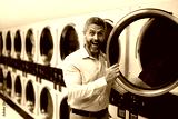 Tight schedule and time management. Effective planning in schedule. Well-organized man in public laundry. Work-life balance. Overloaded schedule for busy mature business man. Busy schedule.