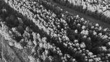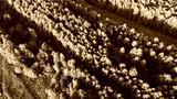 Natural field with typical trees, golden intense colors and long shadows. Golden hour in the farm village in Europe
