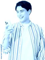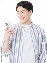 シャツを着た男性の背景透明pngの合成素材 スマホを持つ