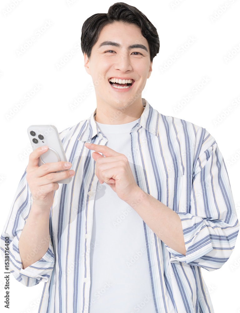 シャツを着た男性の背景透明pngの合成素材 カメラ目線でタップ