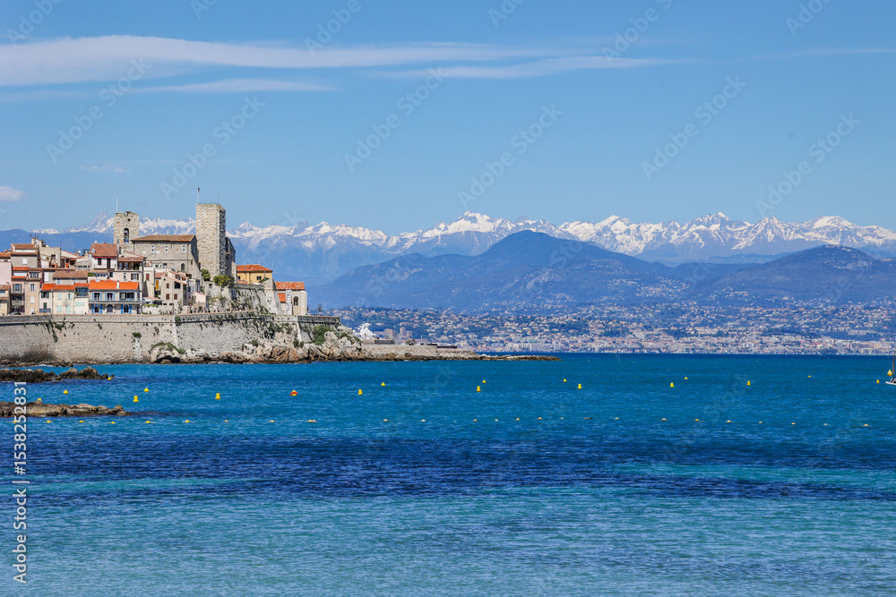 Old Town Antibes and Snow-Capped Alps, French Riviera Coastline