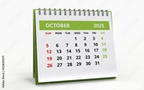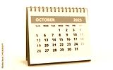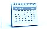 Standing Desk Calendar October 2025. Business monthly calendar with metal spiral-bound, the week starts on Sunday.
