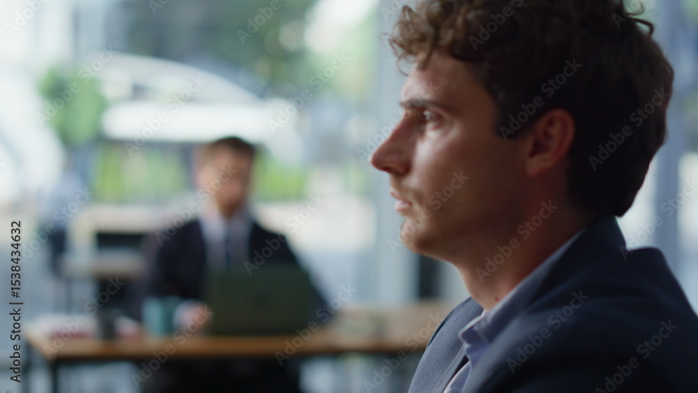Office man typing laptop at coworking closeup. Colleague hands texting keyboard
