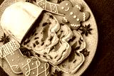 Christmas Stollen, a German sweet cake with marzipan and fruit. Winter Christmas Stollen