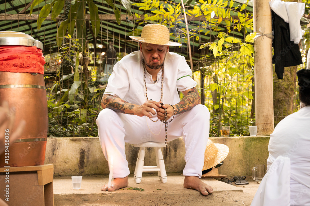 white man incorporated with religious manifestation of umbanda known as preto velho.