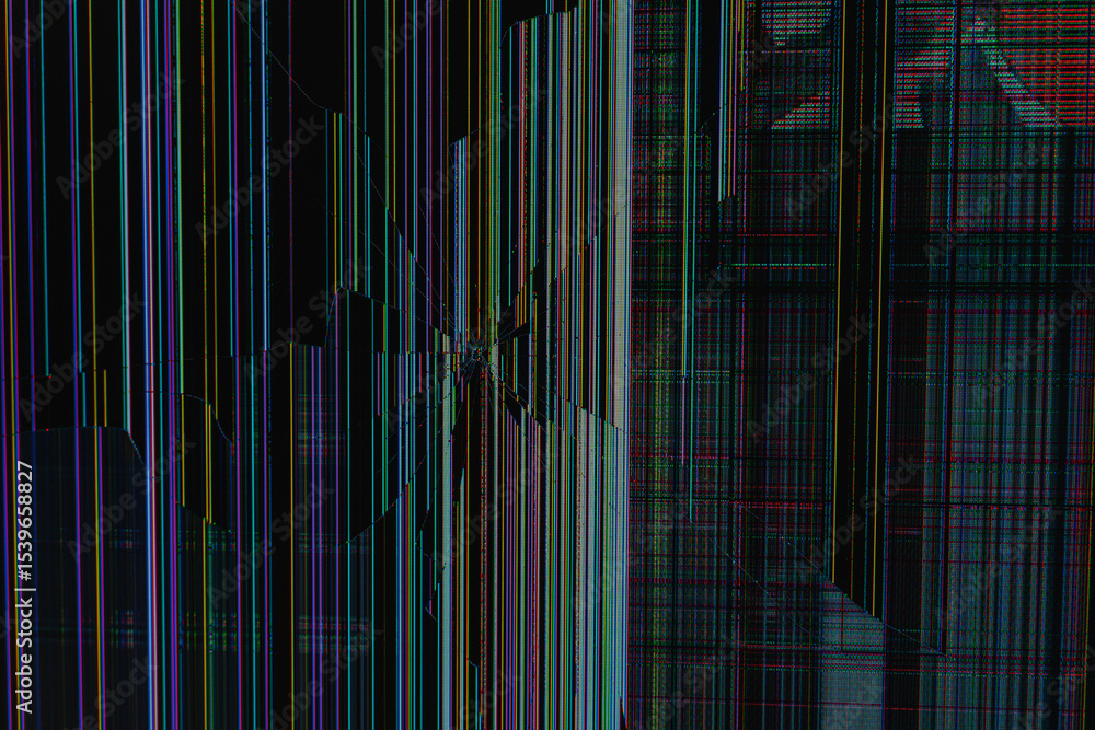 Colored lines on the damaged matrix of the monitor or TV screen