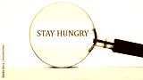Concept Phase STAY HUNGRY focused through a magnifying glass