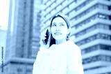 スマートフォンを手に晴れやかな表情で通話を楽しむ白トップスの女性