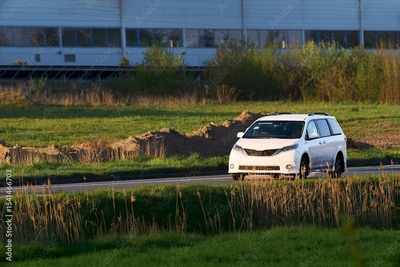 Green energy vehicle on quiet road