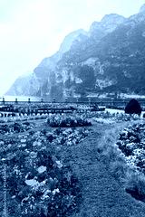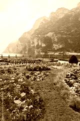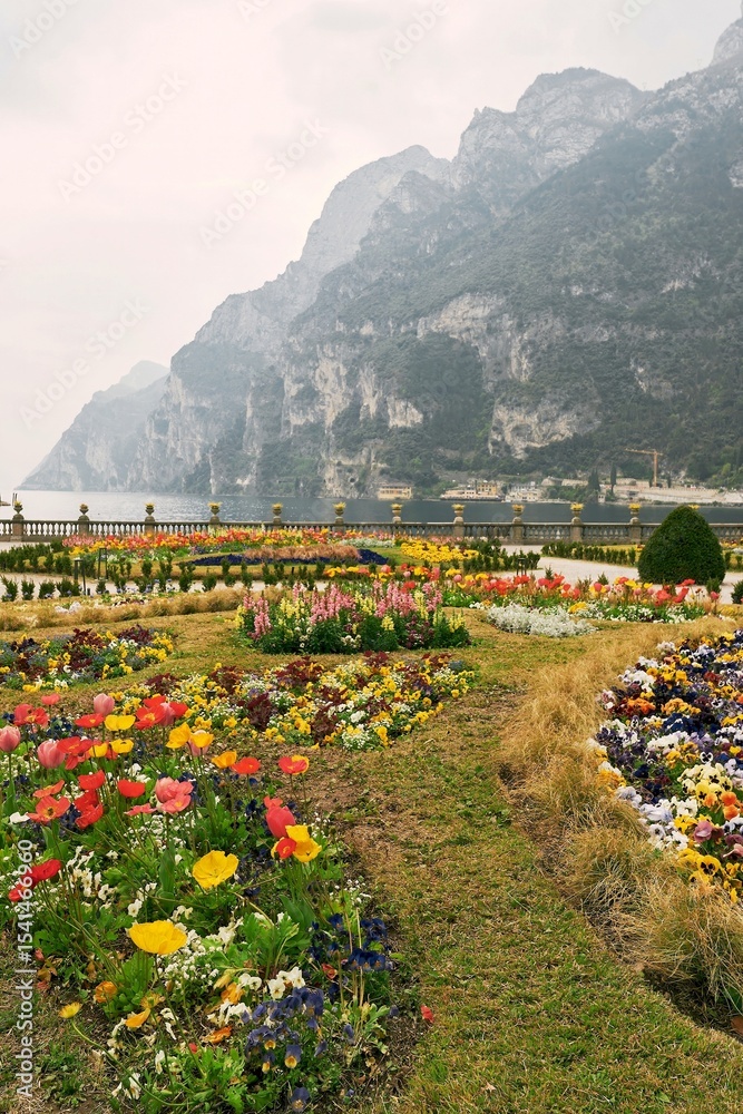 Colorful flower garden with mountain view