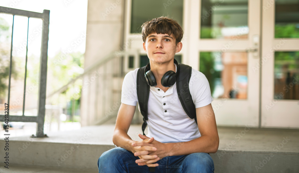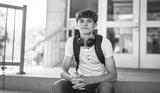Portrait of smiling elementary school boy with his backpack