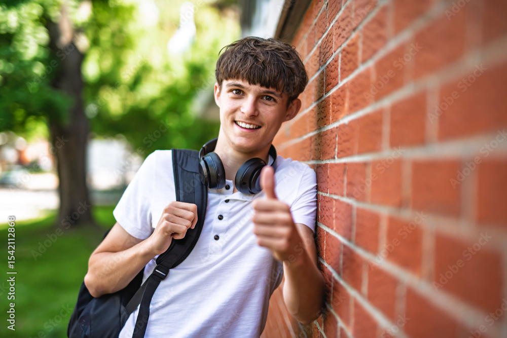 Portrait of smiling elementary school boy with his backpack