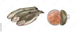 Canned Tuna Isolated, Albacore Fish Chunks in Open Tin Can, Tuna Oil Preserve, Seafood Conserve