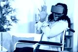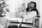 aralyzed woman playing with modern gadget while sitting on wheelchair