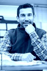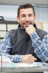 worker master thinking seriously about problems in the workshop office