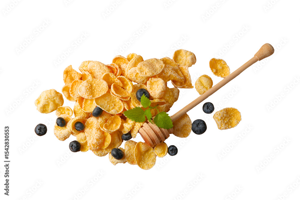 Honey blueberry cornflakes, isolated on white, PNG