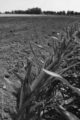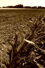 Close-up of Corn field near plowed field in spring in the italian contryside