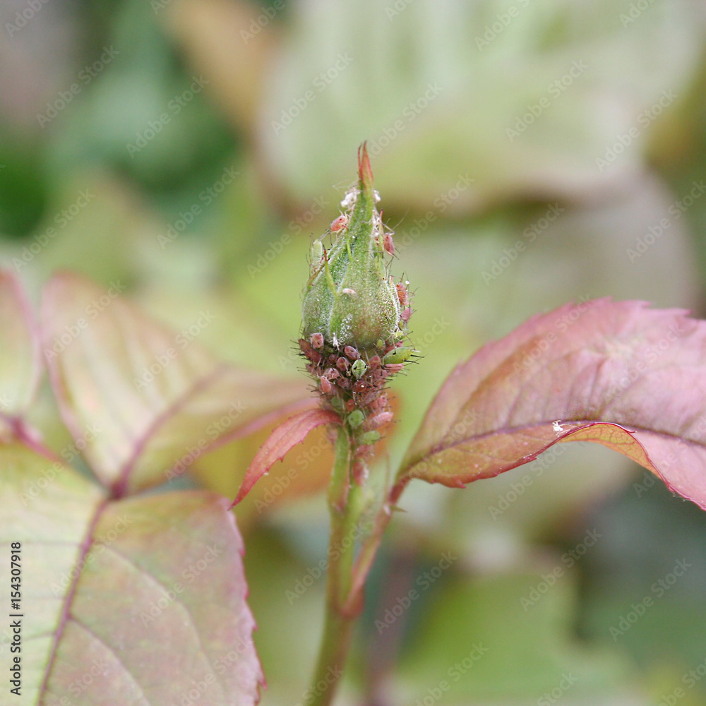 Afidi su pianta di Rosa in giardino. Macrosiphum rosae
