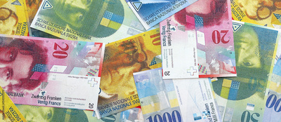 Swiss franc banknotes. The current francs money bills lies on table in big amount. The concept of business and investment