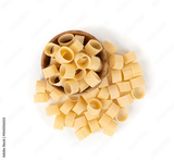Raw Calamarata Big Pasta Isolated, Homemade Dry Macaroni, Italian Raw Round Noodle