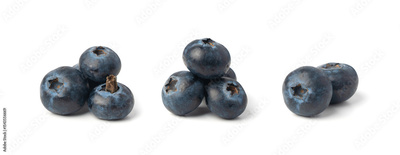 Blueberry isolated. Fresh blue berry fruits, bilberry group on white background, ripe bluberry