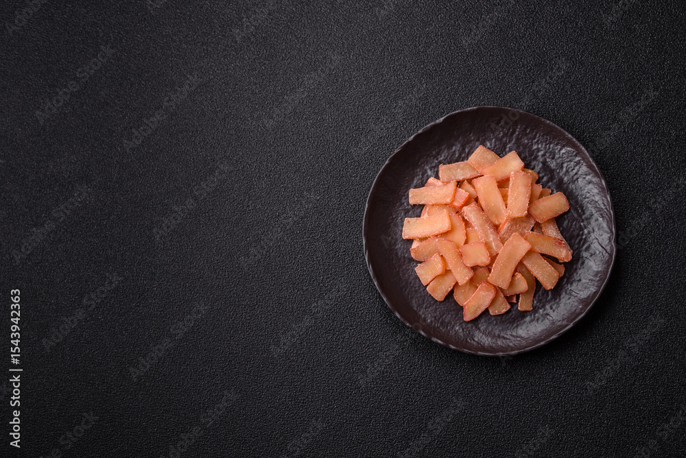 Food, dried squid in shavings or chopped as snacks or jerky. Snack dried squid for beer