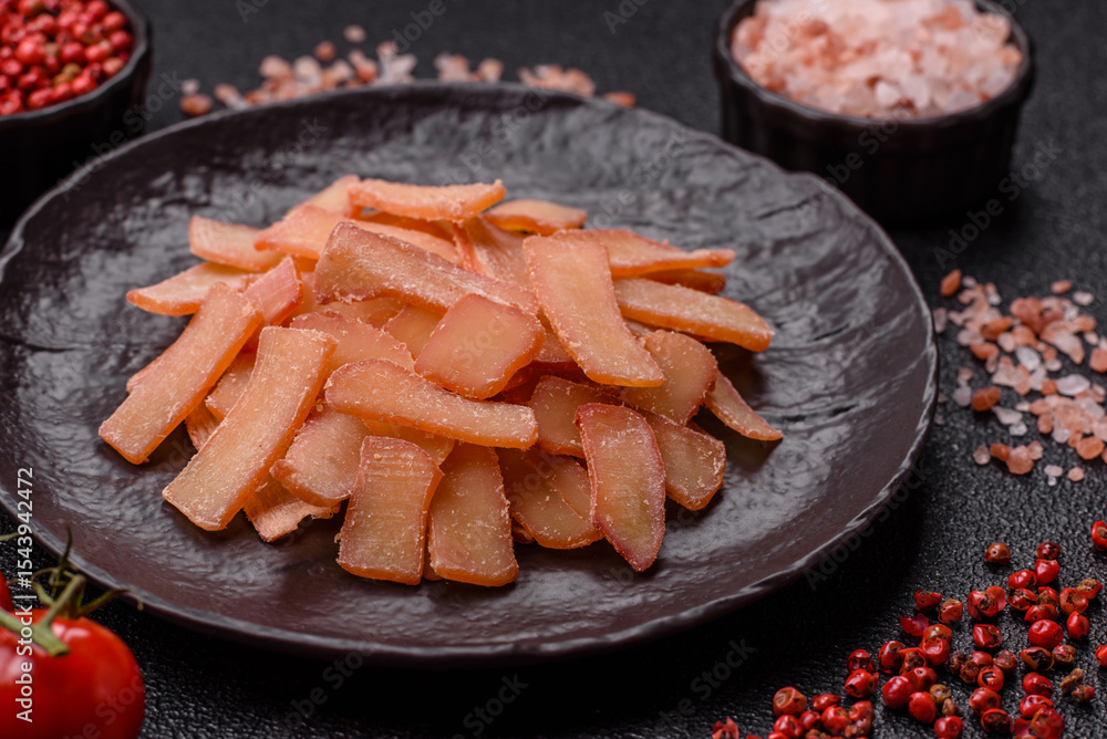 Food, dried squid in shavings or chopped as snacks or jerky. Snack dried squid for beer