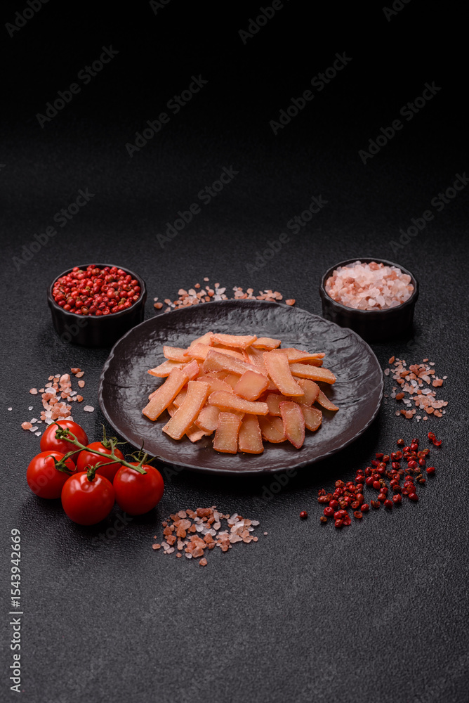 Food, dried squid in shavings or chopped as snacks or jerky. Snack dried squid for beer