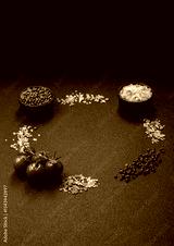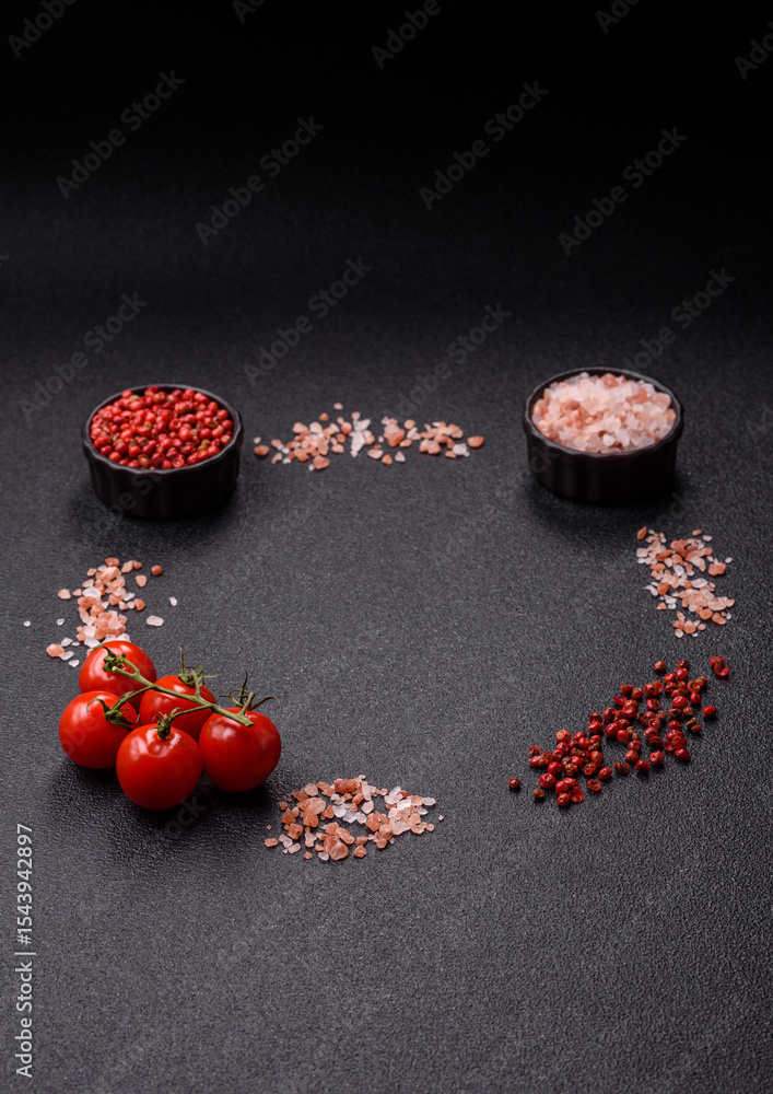 Ingredients for cooking cherry tomatoes, salt, spices and herbs