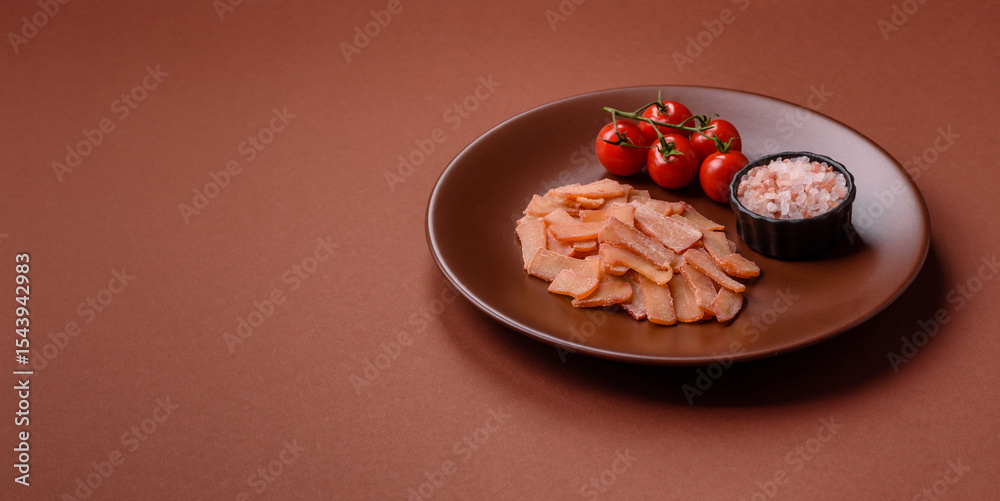 Food, dried squid in shavings or chopped as snacks or jerky. Snack dried squid for beer