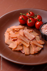 Food, dried squid in shavings or chopped as snacks or jerky. Snack dried squid for beer