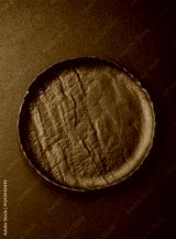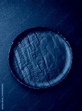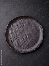 Empty round black plate for food, risotto or pasta. Empty plate on dark background