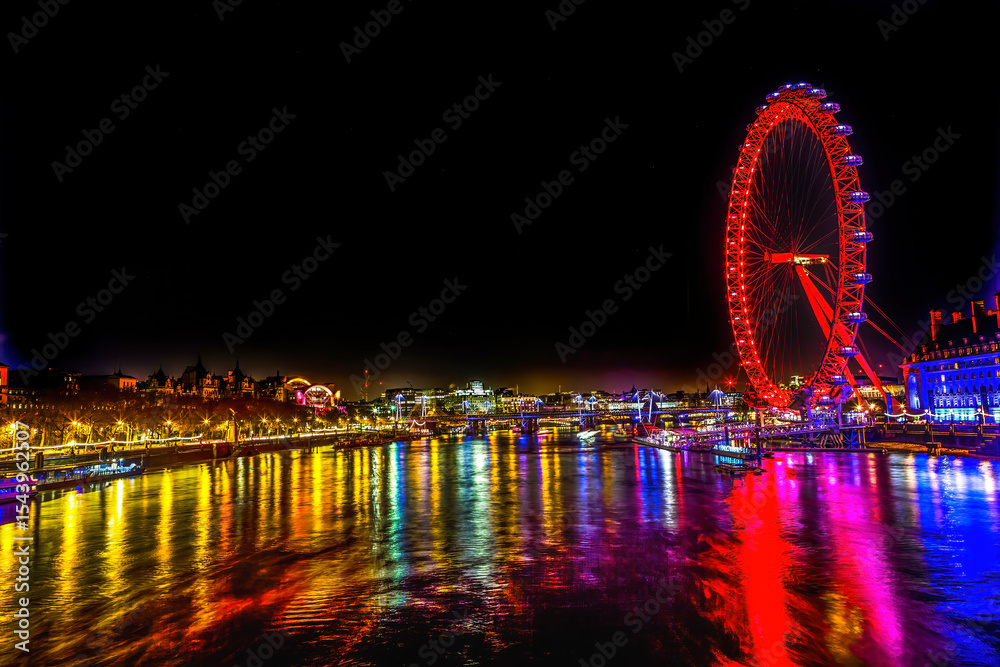 Big Eye Ferris Wheel and Thames River, Westminster Bridge, Westminster, London, England.