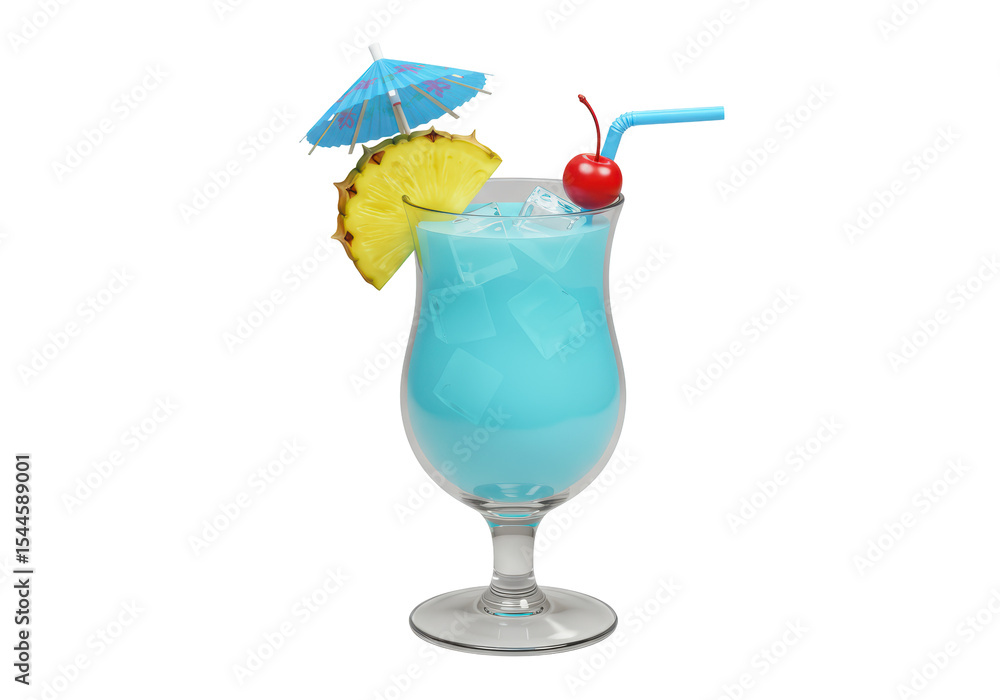 Isolated Tropical Blue Cocktail with Pineapple and Cherry Garnish