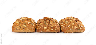 Pumpkin seeds bread isolated, breakfast roll with pepita seeds. Fitness square bun, healthy burger