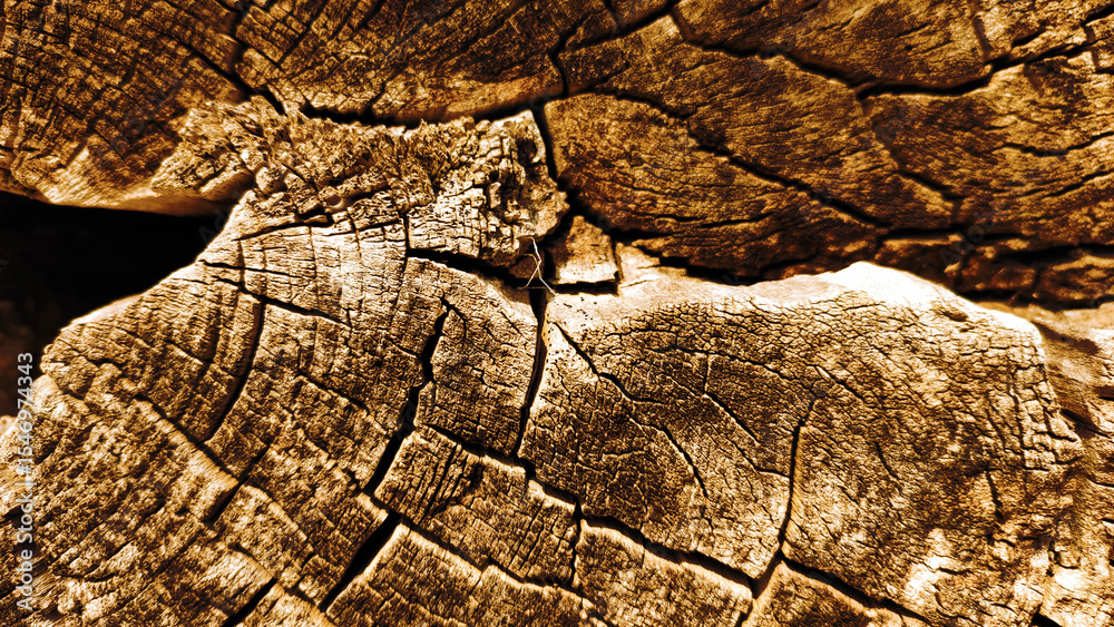 Background of old cracked brown wood material texture. Background for banner, backdrop or texture for 3D mapping