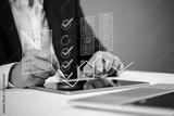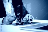 Hand holding stylus, approving virtual property documents, highlighting streamlined real estate transactions and digital contracts. Ideal for real estate tech and smart home concepts.