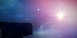 Building against multi colored glowing sky