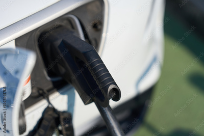 Electric car charging at public station: powering sustainable transportation - sustainability and clean energy concept