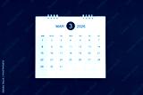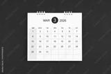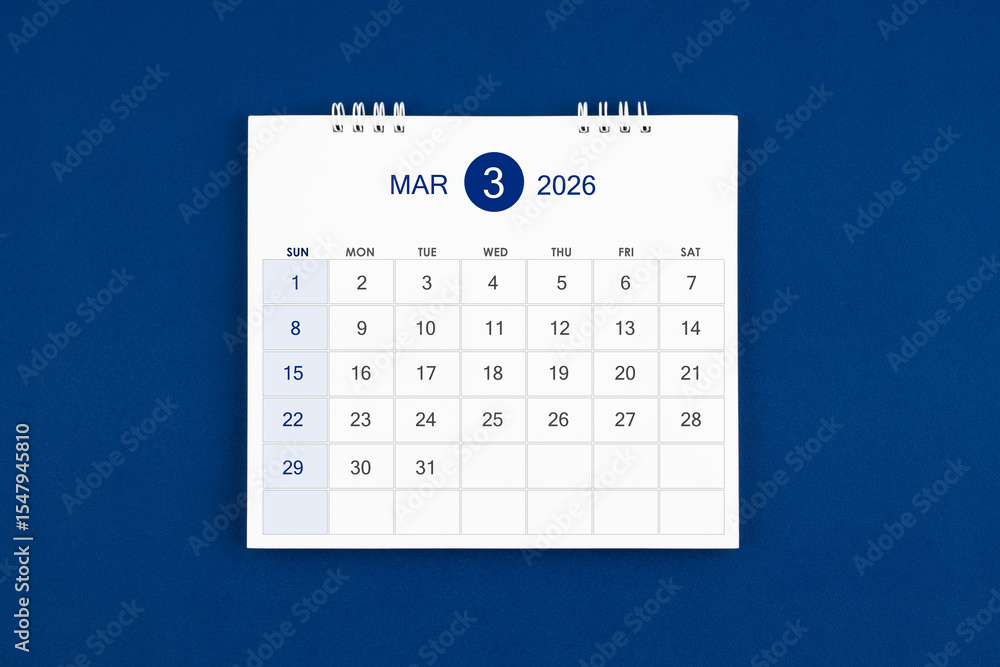March 2026 Monthly desk calendar on navy blue color leather background.