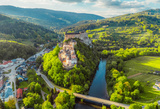 Orava castle or oravsky hrad in Oravsky Podzamok in Slovakia. Medieval castleon high cliff by the Orava river.