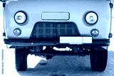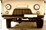 A family van that the manufacturer started production since 1941, is four-wheel drive and commonly used in upcountry of Russia. Engine grilled is covered by brown cloth for protection.