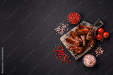 Meat, beef ribs in a marinade grilled with salt and spices. Grilled ribs