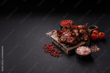 Meat, beef ribs in a marinade grilled with salt and spices. Grilled ribs