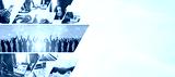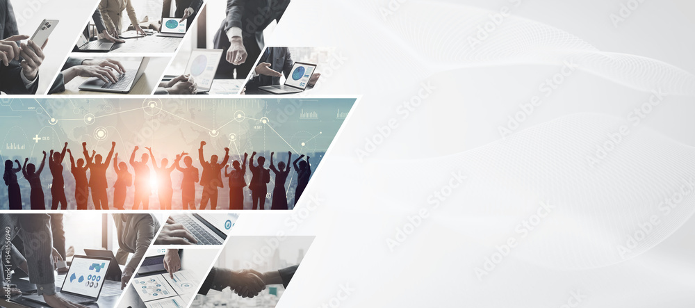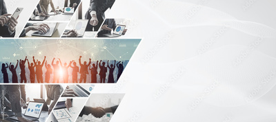 A collage of various business and technology images. Wide angle visual for banners or advertisements.